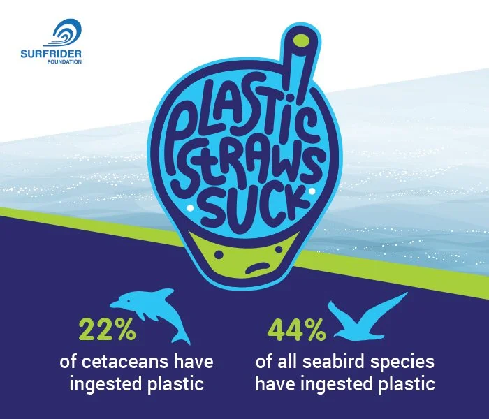 Straws are often littered, or caught by the wind, and washed into storm drains that empty into streams and other waterways, ultimately ending up in our ocean and on our beaches. Plastic straws rank in the top 10 for marine debris. 44% of all seabird species and 22% of cetaceans have ingested plastic.